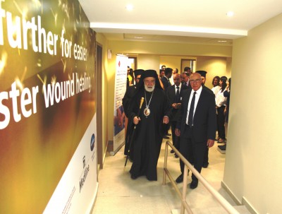 برعاية وحضور سيادة متروبوليت بيروت وتوابعها للروم الأورثوذكس المطران الياس عوده ، تمّ ظهر الجمعة 20 تشين الثاني 2015 افتتاح عيادة الجروح والمركز التدريبي الجديد في مستشفى القديس جاروجيوس الجامعي وذلك بالتعاون مع شركة Hartmann – ألمانيا، وMediline – بيروت. شارك في الإحتفال أعضاء مجلس الإدارة والمدير العام السيد سلام الريّس والمدير الطبي الدكتور عماد الحاج ورؤساء الأقسام والدوائر الطبية والإدارية في المستشفى .
