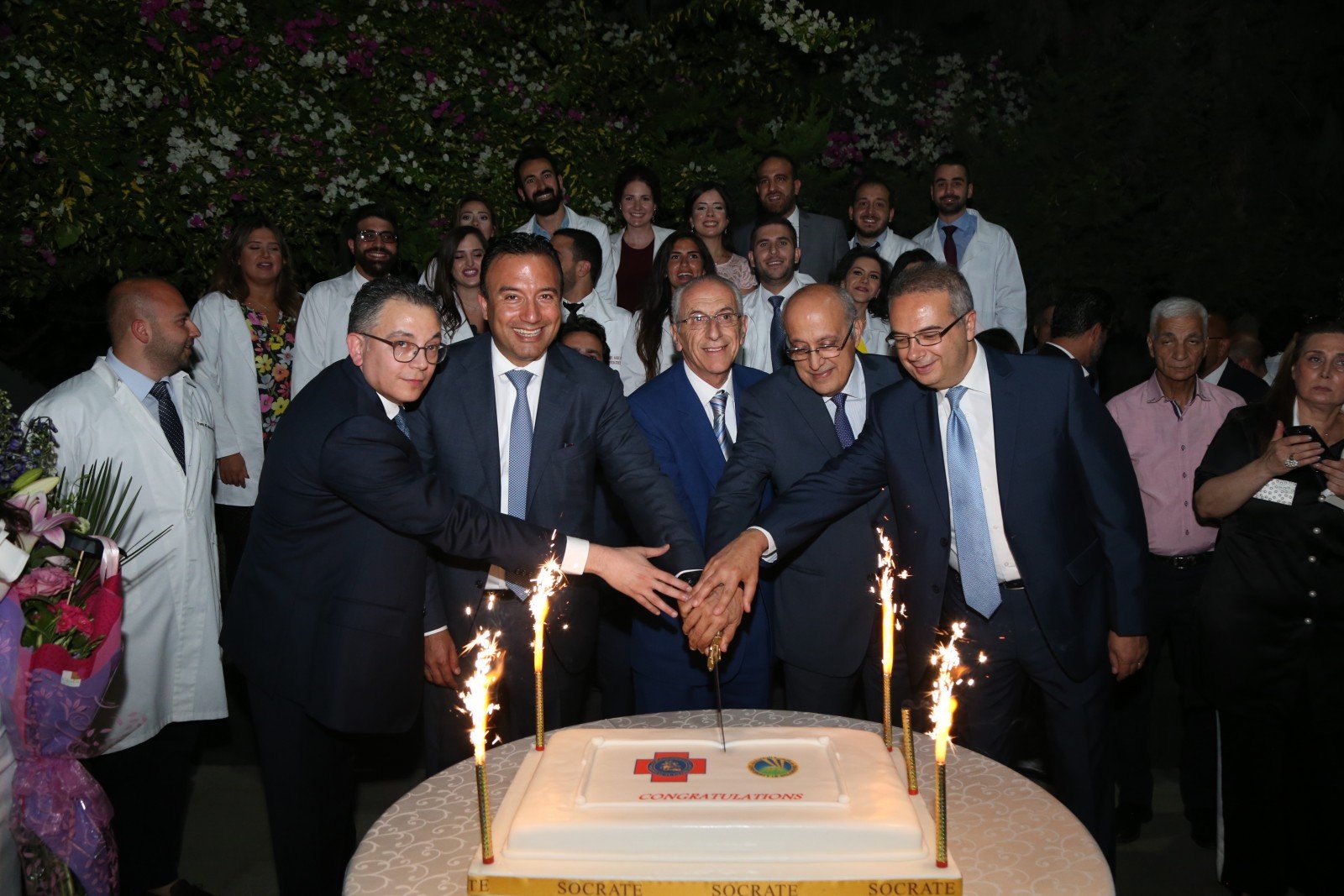 The opening ceremony ended with the gratifying speech of Dr. Christian Attieh, Resident Representative, thanking all those who contributed to nurturing the residents’ lives, including their hospital family as well as their parents. He reiterated his “commitment to Hippocrates’ oath by staying focused on the noble cause of catering to the health and well-being of humans.”